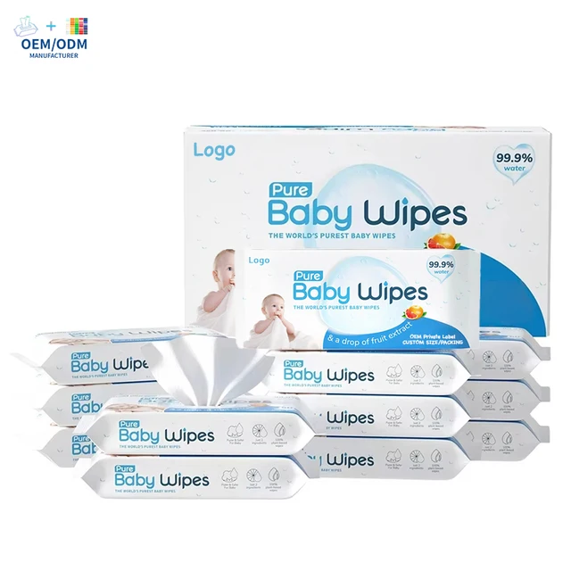 Custom Soft Care Spunlace Non-Woven Face Cleaning Baby Wipes Fragrance Free Natural 99.9 Pure Water Wet Wipes for BabyFOB: $0.20-0.21